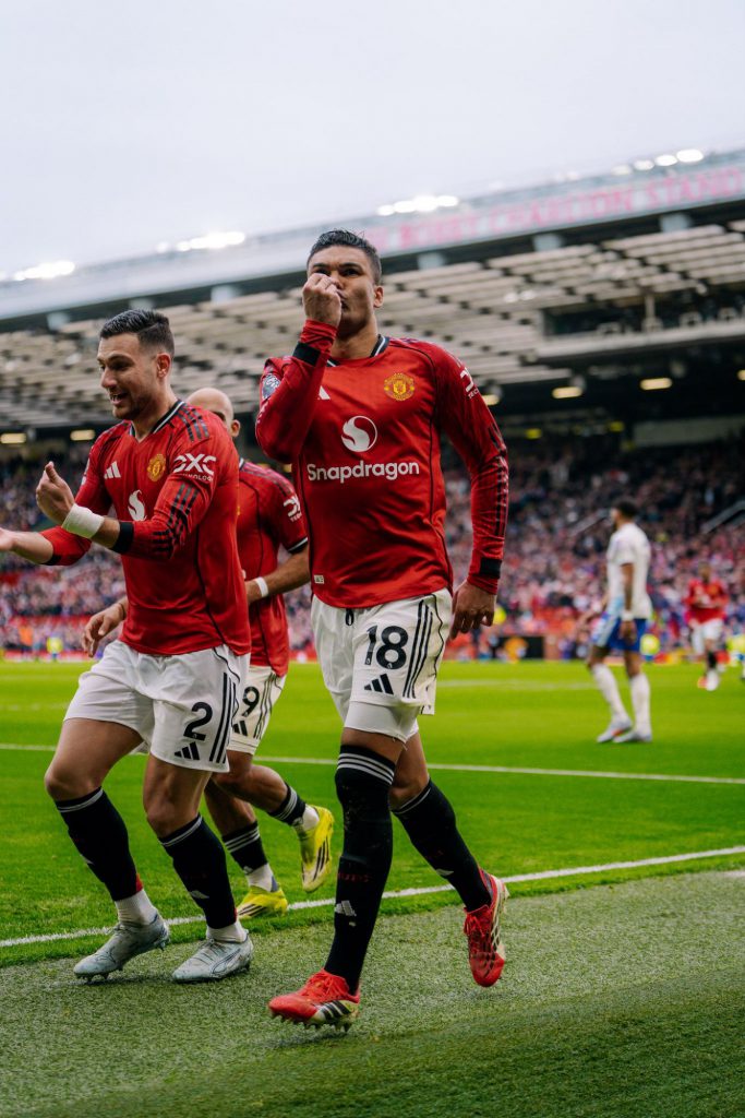 La seconde période confirme cette impression. United revient avec plus d’intensité, plus de verticalité. Les situations se multiplient, et sur corner, la délivrance arrive. Fernandes enroule au premier poteau, Casemiro coupe la trajectoire et place une tête subtile qui trouve le petit filet opposé (1-0).